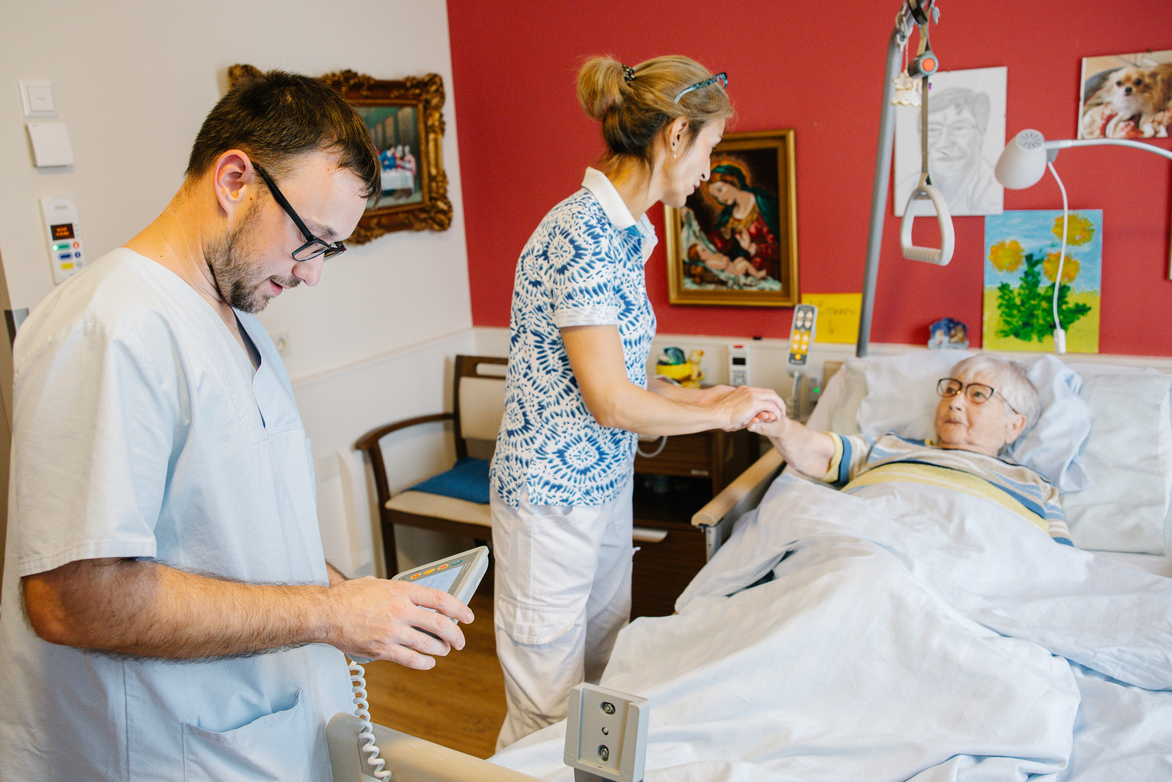 Ein weiterer Schritt in die Zukunft der Pflege ist die Einführung der Televisite im Hospiz St. Katharina. Hier wird bald eine telemedizinische Sprechstunde mit den betreuenden Ärzten möglich sein. Das System „Docs in Clouds“ ist direkt mit der digitalen Pflegedokumentation verknüpft, sodass auch Untersuchungen wie Blutzuckermessungen, EKGs oder der Einsatz eines digitalen Stethoskops ganz einfach mit telemedizinischer Rücksprache durchgeführt werden können. Das verbessert nicht nur die medizinische Versorgung der Hospiz-Bewohner*innen, sondern entlastet auch das Pflegepersonal spürbar.